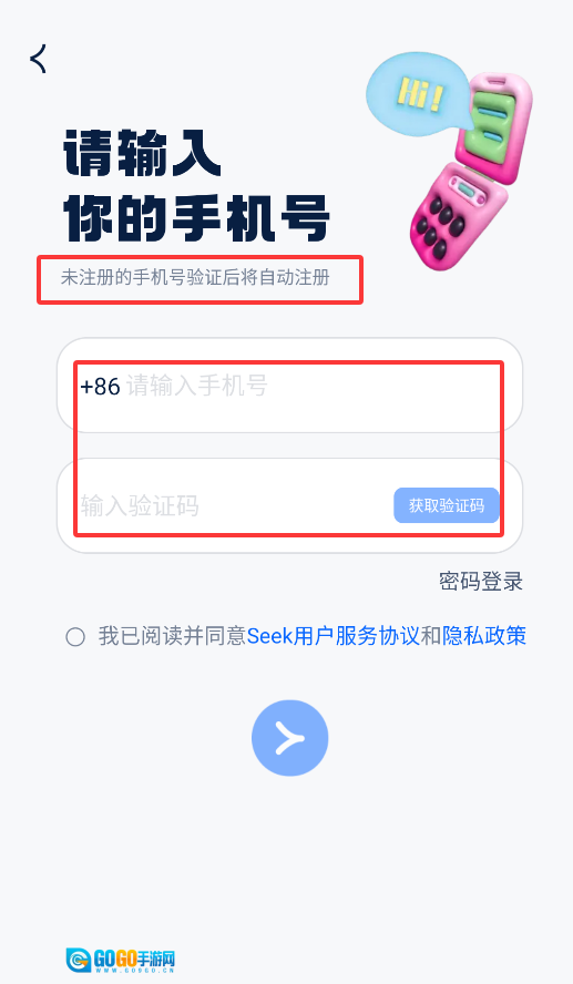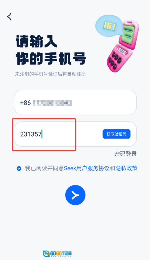 2、填写有效的手机号码并获取短信验证码,系统将自动为该新号码创建账号(无需手动进行注册操作)。