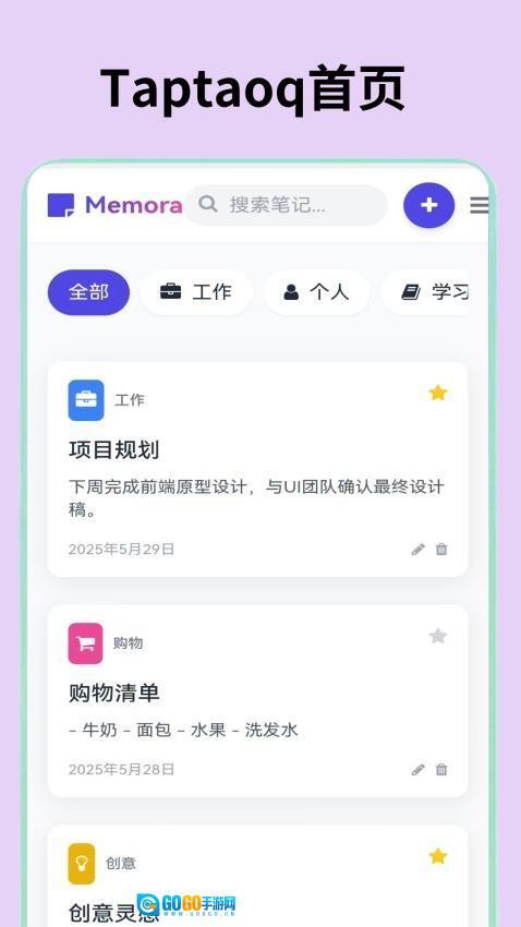 Taptaoq是一款挺实用的手机备忘录工具。它记录事情的速度特别快,还支持对各类备忘内容进行分类管理,像学习计划、重要日程等都能清晰归类。另外,它具备倒计时提醒功能,能帮你避免忘记待办事项。操作起来十分简单,随手就能快速记录下重要信息。如果平时事务繁多、容易健忘的朋友,不妨试试这款工具,它确实能助力你把生活打理得井然有序。