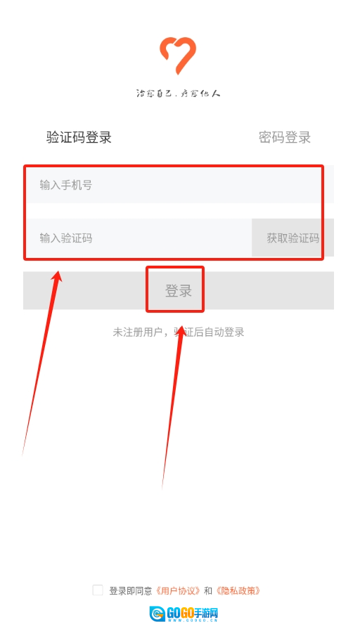 1、启动软件,进入登录界面后输入手机号码,待获取验证码并填写完毕即可完成登录操作。