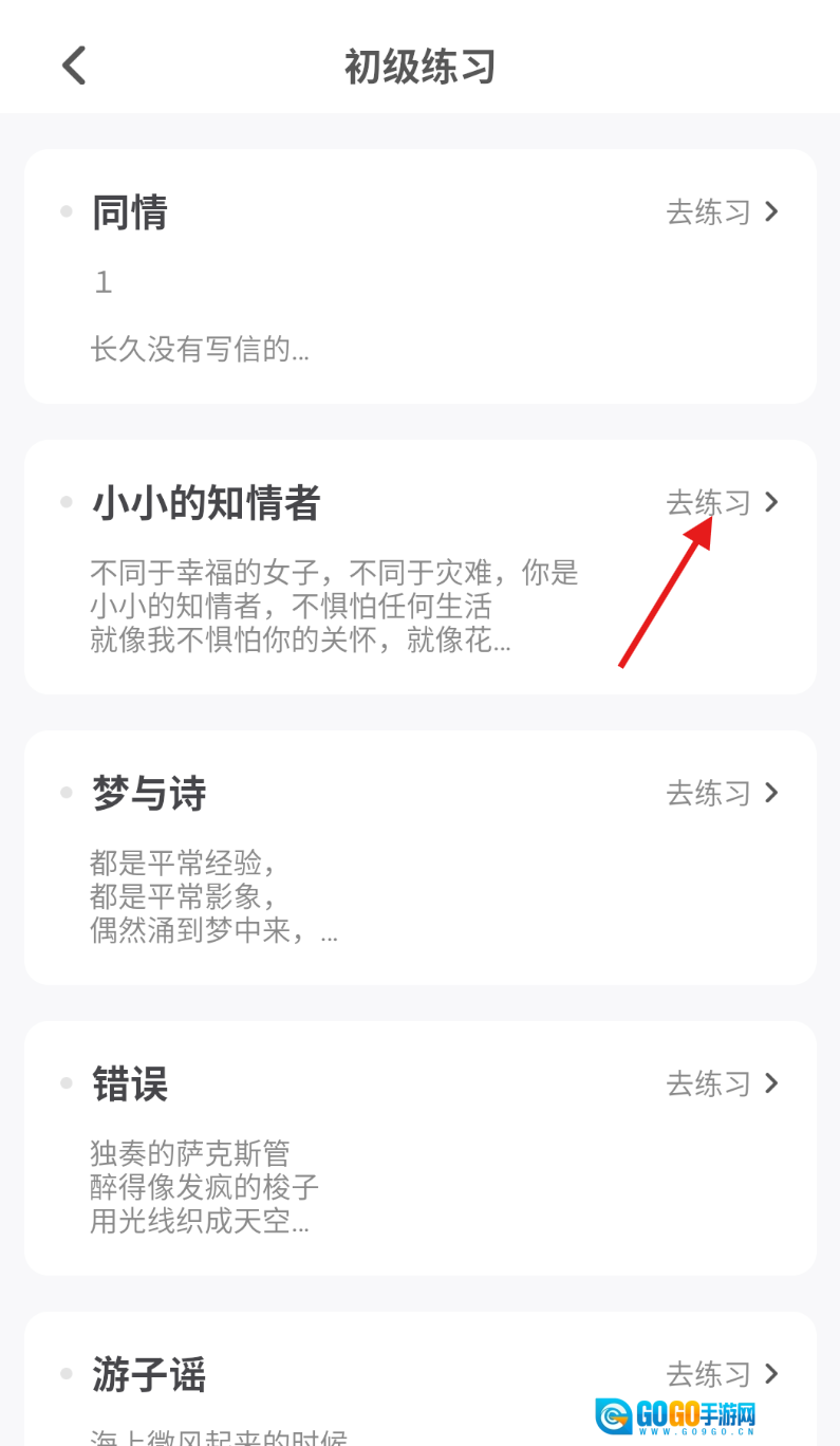 3、进入选定的练习类型页面后,这里会呈现多篇不同的文章,你可以从中挑选一篇,点击后即可开始练习。