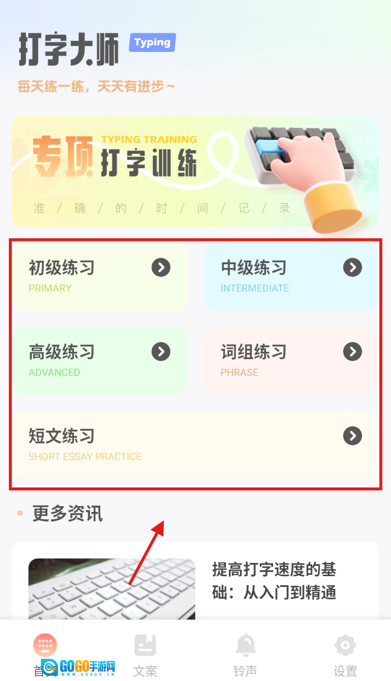 2、依据自身实际需求,从前面提到的练习模块里挑选出自己想要开展的练习类型,然后点击进入即可。