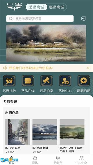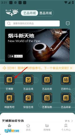 1、在艺品商城首页找到并点击“艺博惠”选项,即可进入艺博惠作品专区页面。