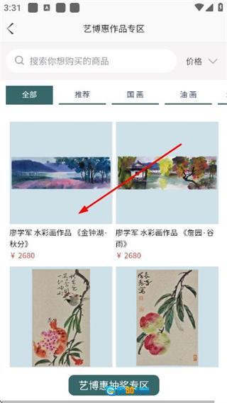 2、在艺博惠作品专区页面找到目标商品并点击,即可进入该商品的详情页面。