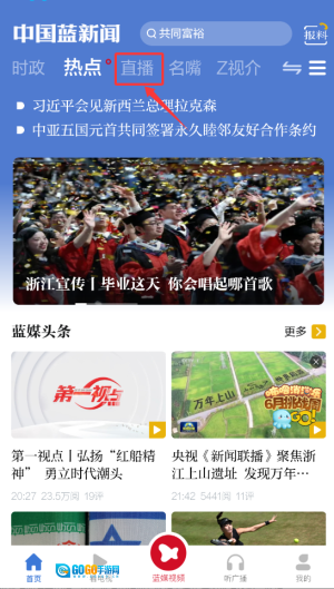 打开中国蓝新闻后,在首页的导航栏里找到“直播”频道,点击进入该频道。