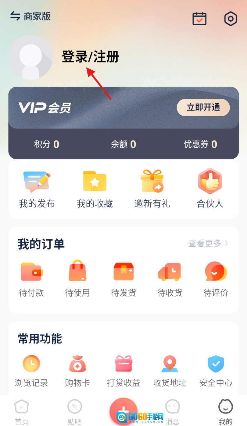 2、进入“我的”页面后,找到“登录/注册”选项并点击,即可进入登录相关界面。