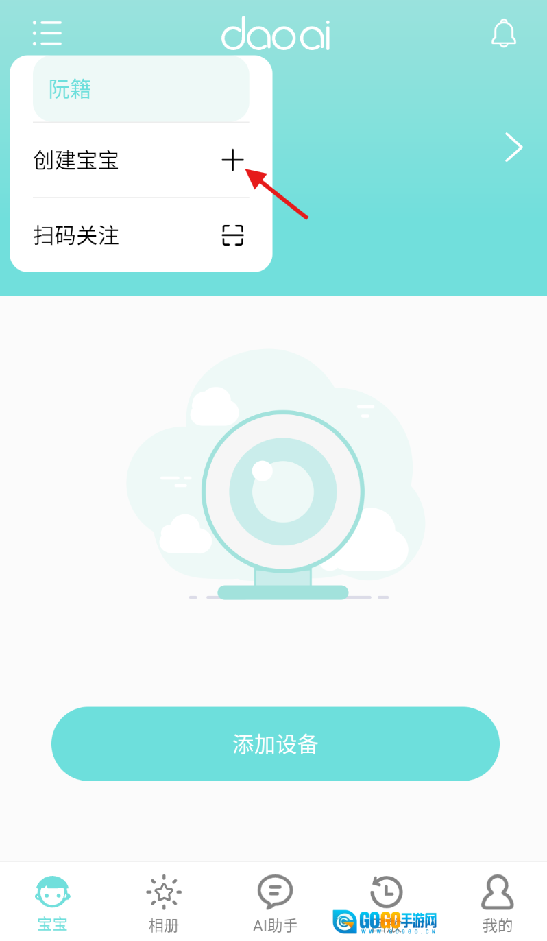 2、在弹出的功能菜单里点击“创建宝宝”选项,即可进入信息录入界面。