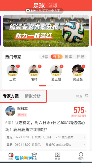 浏览专家推荐内容时,能借助联赛分类或者胜率排序的方式进行筛选,从而快速定位到符合心意的比赛分析方案。