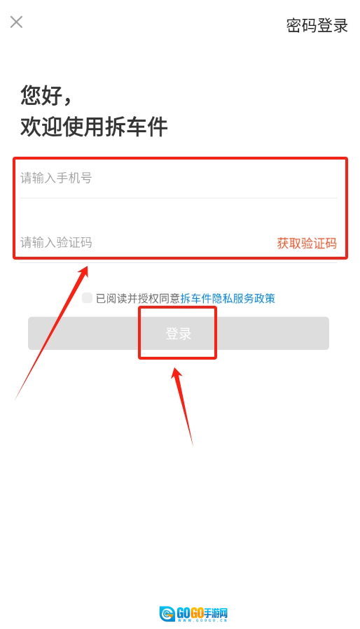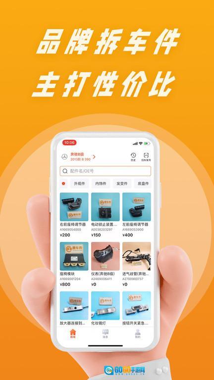 1、软件安装标准操作流程:在应用商店搜索“拆车件”,待安装完成后,点击对应图标进入登录界面。