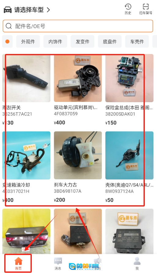 2、登录成功后回到首页,在各类配件中找到心仪的商品,直接点击进入查看详情。
