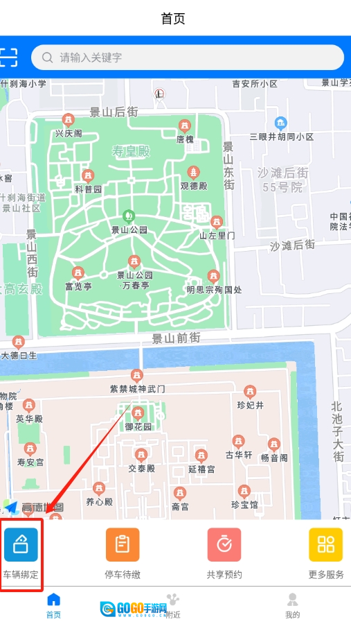 1、启动软件进入首页后,找到“绑定车辆”选项并点击。