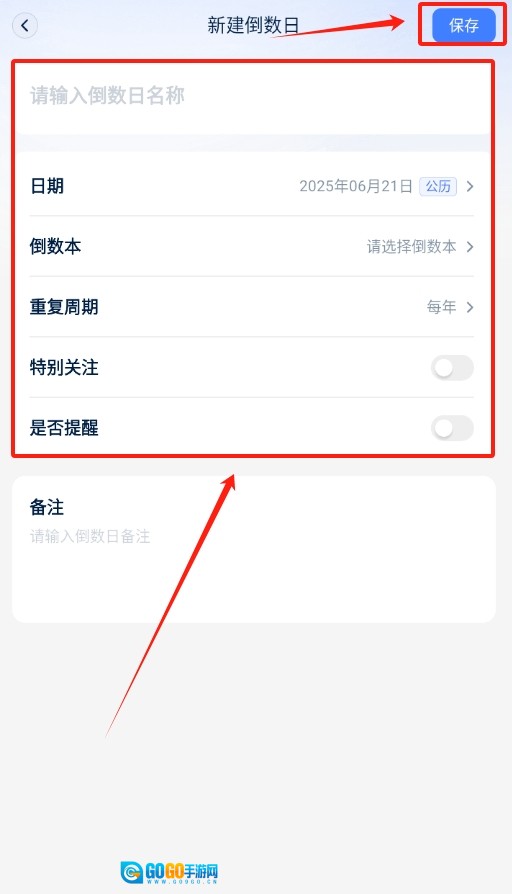 2、将需要记录的事项名称、日期以及重复周期填写完整,确认信息准确无误后,点击保存按钮即可。