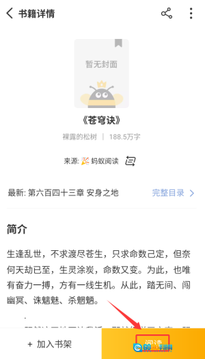 在书籍详情页点击“阅读”按钮,就能查看完整的小说章节内容。