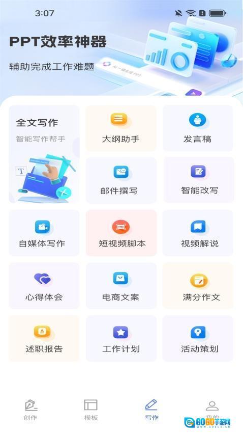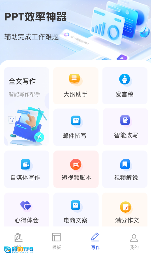 3、使用“AI写作”功能快速生成大纲、演讲稿或自媒体脚本,支持对现有内容智能润色优化。