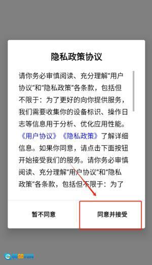 首次打开应用时,请先阅读用户协议,勾选同意相关条款后,就能进入应用的主界面了。