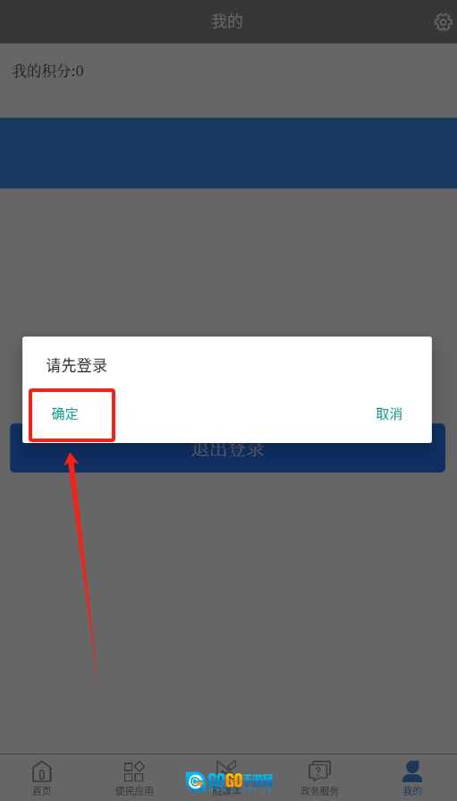 1、打开爱易县便民服务应用,进入后会看到登录提示,直接点击确定按钮即可。