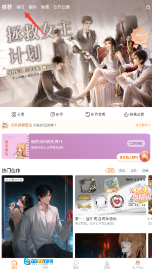 1、打开橙光小说应用后,在首页的导航栏里找到并点击“排行”选项,该栏目会呈现出各类热门小说的排行榜单。