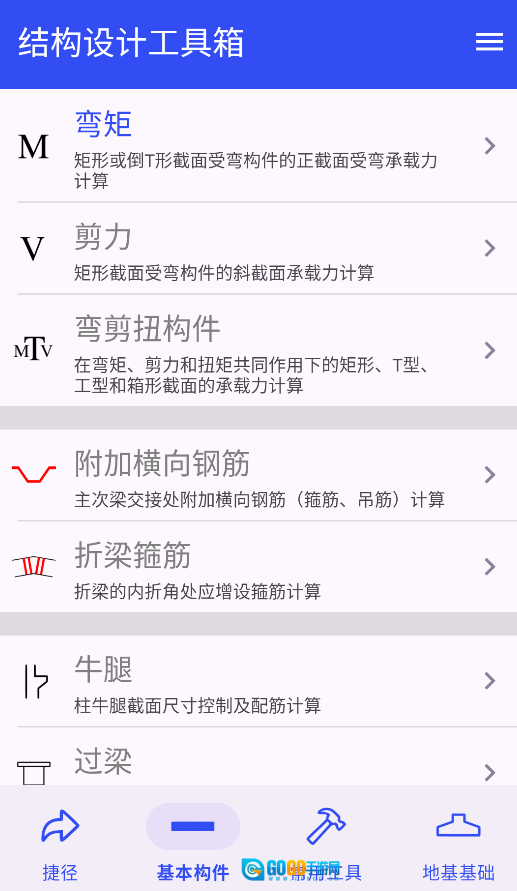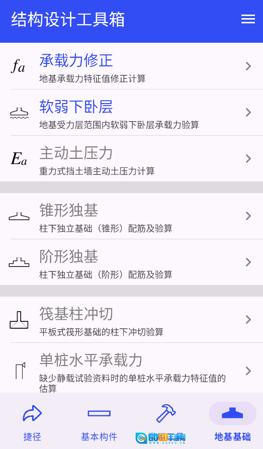 这款结构设计工具箱对工程师来说实用性很强,建筑结构计算、地基验算等功能都能轻松实现。常用工具分类清晰明了,进行数据计算时十分便捷。要是你日常频繁需要画图或者开展设计工作,使用它能省去不少麻烦。另外,它的操作简单易懂,得出的结果也很可靠,赶紧来体验一下吧。