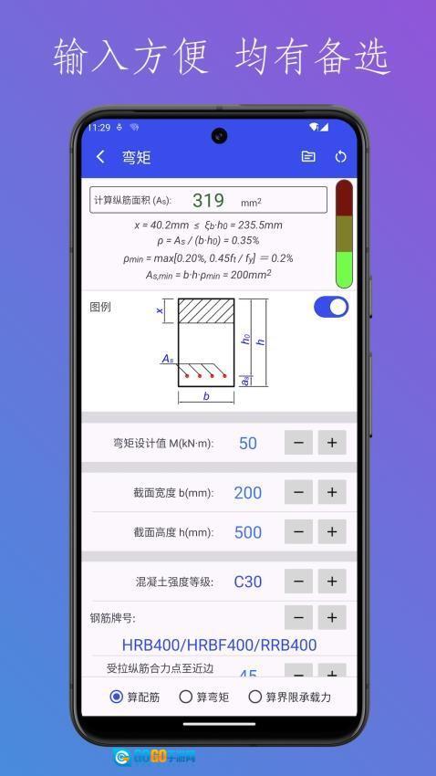 2、结构分析工具:可快速完成荷载组合计算、内力分析等关键指标的运算。分析结果以图表形式呈现,直观清晰,便于理解。