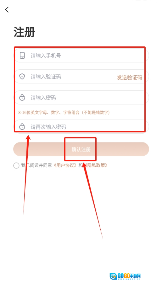 3、新用户注册时,先输入手机号获取验证码,填写验证码后设置密码,就能完成账号注册流程。