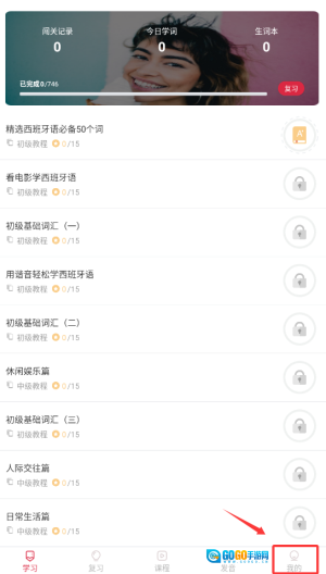 1、打开西语U学院应用,点击底部导航栏中的“我的”按钮,即可进入账户管理界面。