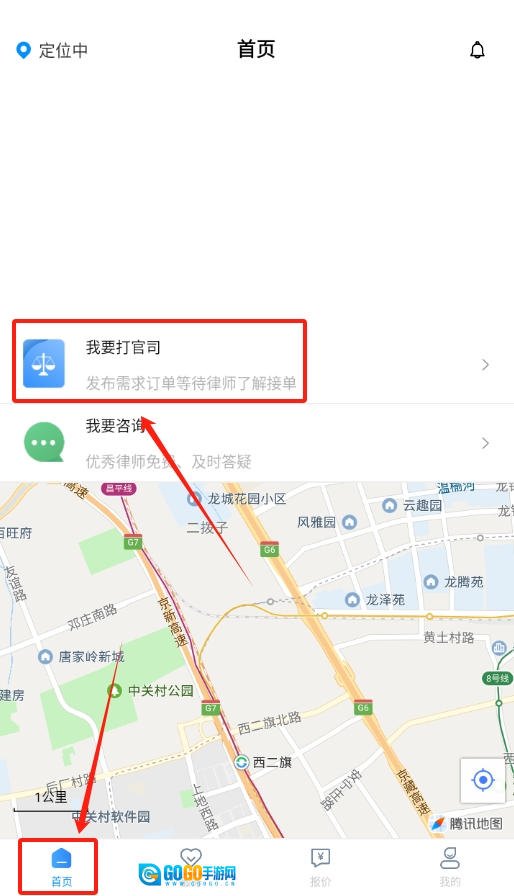 3、成功登录后,返回软件首页,在众多功能里找到 “我要打官司” 选项,点击开启相关服务。