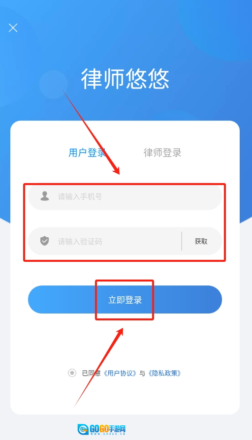 2、在登录页面,依次输入您的手机号,再获取并填写接收到的验证码,无误后点击登录。