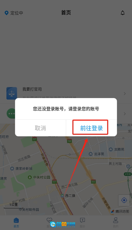 1、打开律师悠悠软件,在首页显眼位置找到 “前往登录” 选项,点击它进入登录流程。