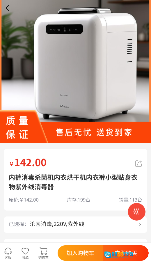 2、点击商品进入详情页后,可查看高清实拍图、规格参数与用户评价,还能在线咨询客服。