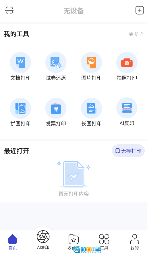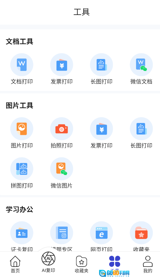 2、主界面的分类清晰明确且直观,用户可依据打印内容的类型,选择文档、照片或发票等对应的功能模块来开展操作。