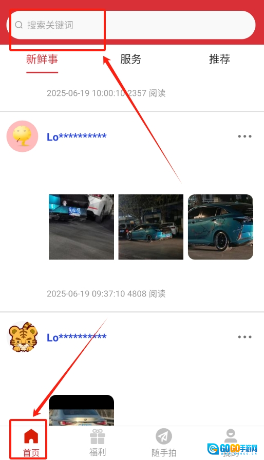 2、登录成功后,返回软件首页,一眼就能瞧见顶部的搜索框,直接点击它。