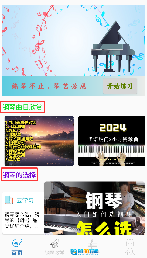 2、进入钢琴教学界面学习乐理,包含识谱入门、演奏技巧、名曲解析等阶梯式课程。