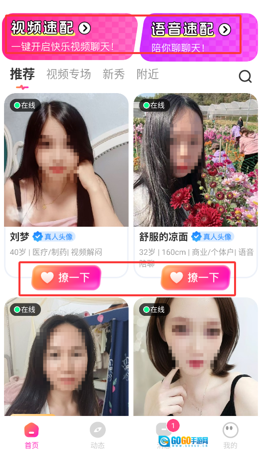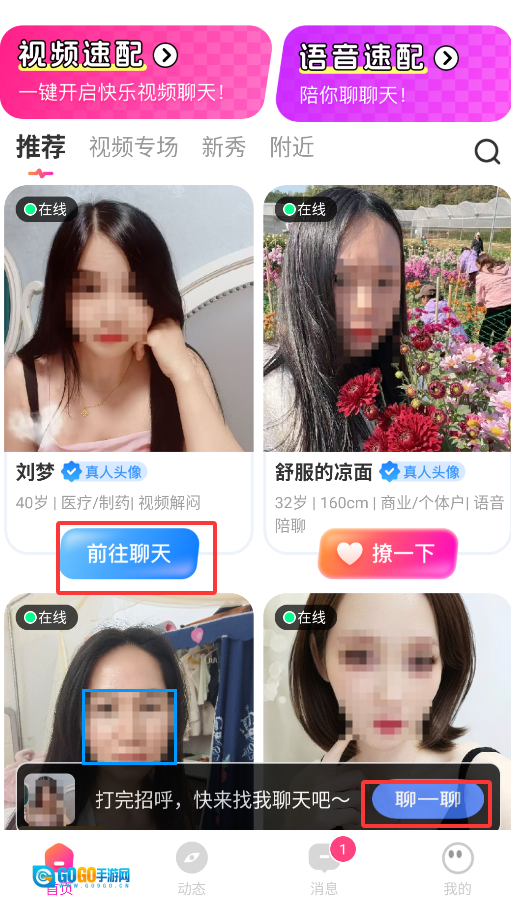 1、启动后,在首页选择“视频速配”或“语音速配”功能,系统会实时匹配在线用户,点击“撩一下”即可发起互动邀请。