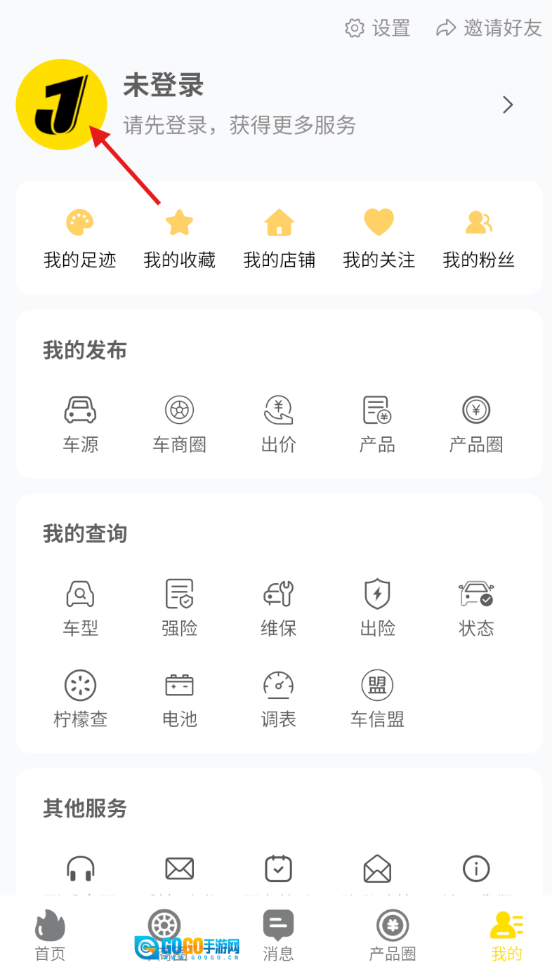 2、进入 “我的” 页面后,点击界面中的头像区域,跳转至登录界面。