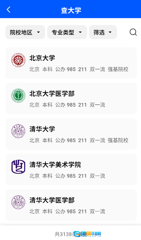 1、院校全景查询:支持按地区、类型、特色等多条件筛选高校,查看历年分数线、招生计划、就业率等核心数据。