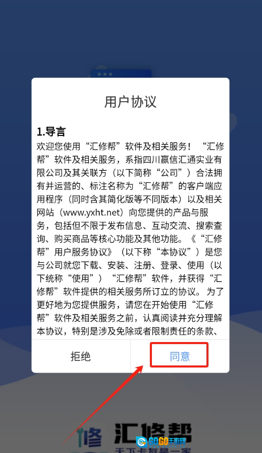 1、打开软件后,页面会弹出软件协议,仔细看完后点击 “同意” 选项。
