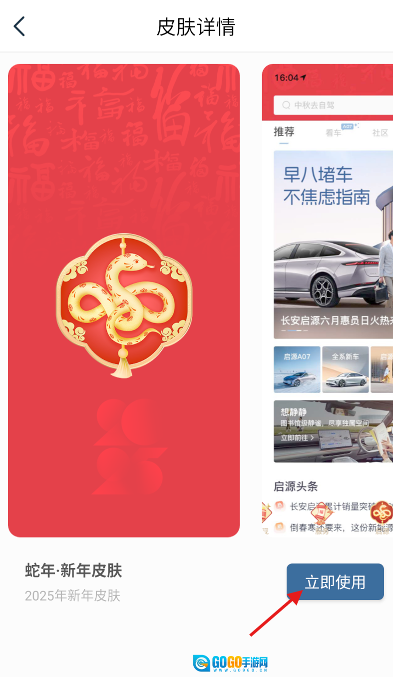 4、跳转至皮肤详情页面后,点击 “立即使用” 按钮,即可完成主题的切换。