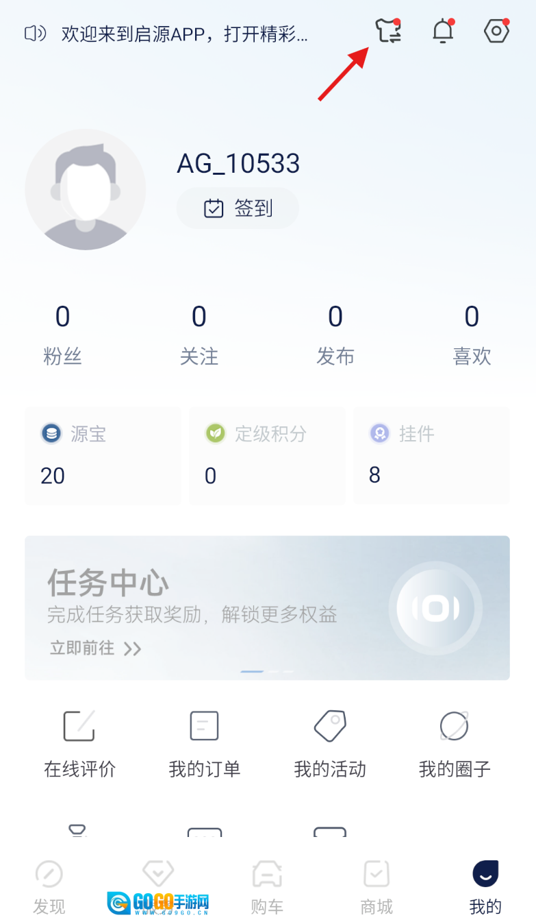 2、进入 “我的” 页面后,留意上方区域的主题切换标识,点击该标识进入相关界面。