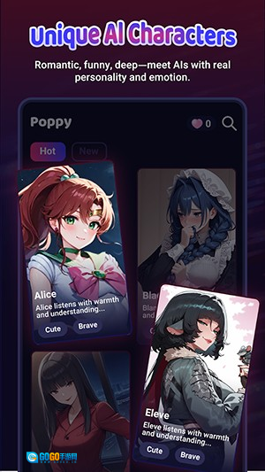 Poppy AI聊天是一款相当靠谱的沉浸式AI角色聊天软件,各类动漫类型都能找到,不同的动漫角色也都能看到,还有不少浪漫和冒险类的角色。多种预设剧情与脚本都会在这里呈现,角色会依据聊天信息形成记忆并展开互动,也能根据用户的喜好和对话方式来进行聊天,感兴趣的话就快来本站体验吧!