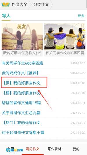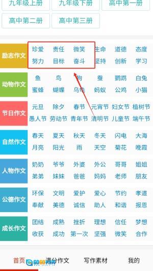 2、在主界面上选择相应分类,快速查找感兴趣的作文主题,帮助提高写作效率与准确性。