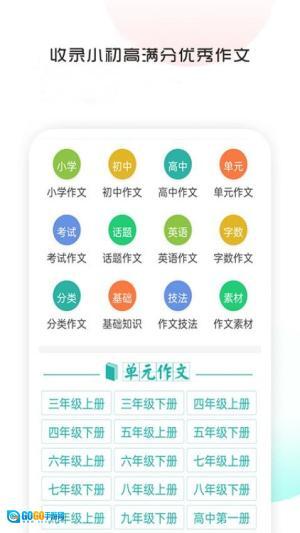 1、丰富的作文资源,涵盖小初高各阶段优秀范文,帮助用户获取灵感,激发创作热情,为写作提供坚实基础。