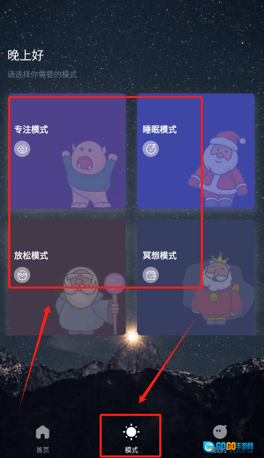 2、切换到模式页面,能看到四种不同的模式,每种都有不一样的玩法和音效。