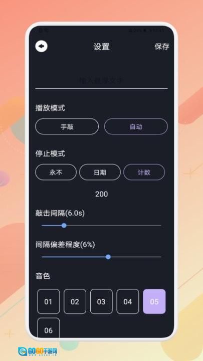 3、进入设置界面开启智能睡眠模式,自由调节敲击时间间隔并添加精美动态背景画面。