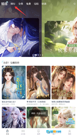 1、启动闪艺后,在首页导航栏选择"排行"版块,这里展示平台各类小说榜单。