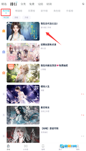 2、在"热作榜"专区浏览时,可根据作品类型或更新时间筛选,快速找到心仪的小说点击封面。