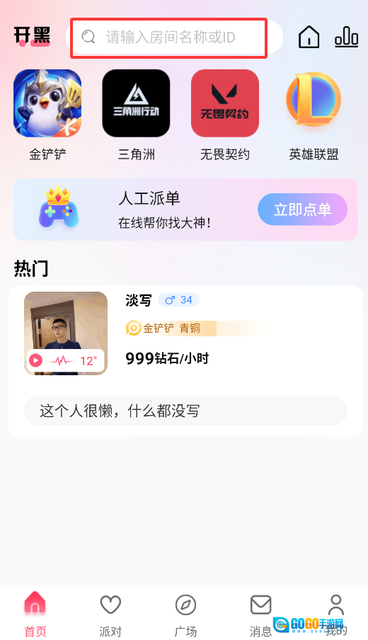 2、在搜索栏输入房间号或名称,可快速加入好友创建的语音聊天房间。