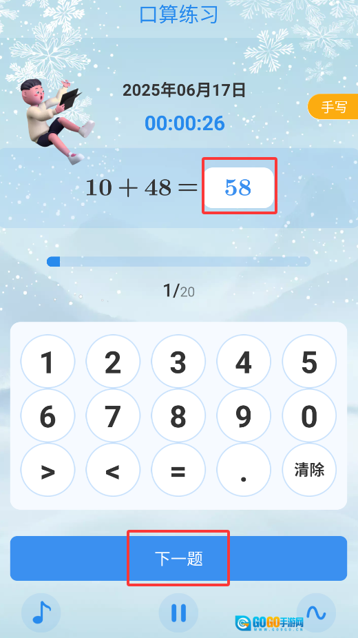 2、系统可智能生成口算题目,涵盖加减乘除等运算类型,题目难度会依据练习进度动态调整。