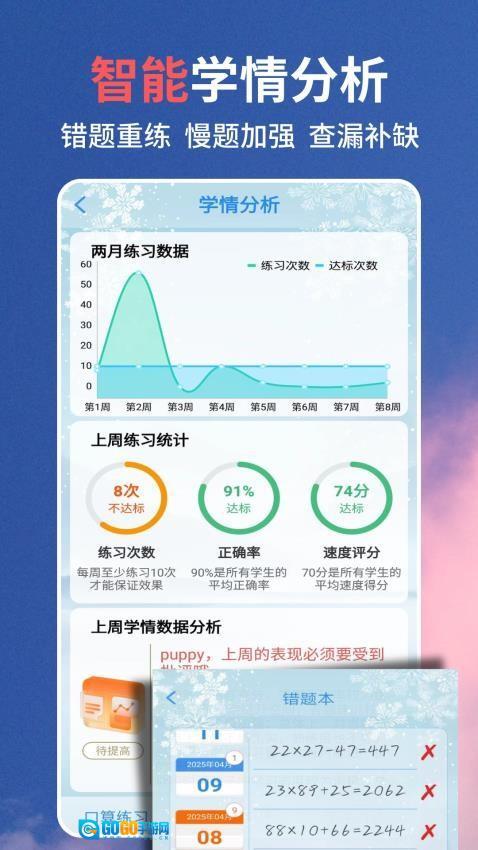 1、这款应用的“自适应出题”算法已通过教育专家认证,可切实减少无效刷题行为,助力用户精准提升计算能力。