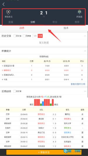 2、在查看比赛详情的过程中,可借助“数据分析”标签页来探究球队的近期状态。并且历史数据能够为多个赛季之间的对比提供支持。