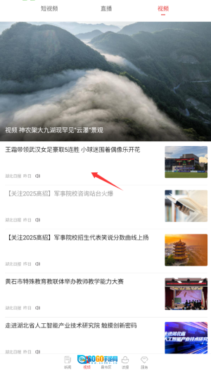 1、启动湖北日报后,在首页导航栏选择"视频"频道,这里每日更新热点新闻视频报道。
