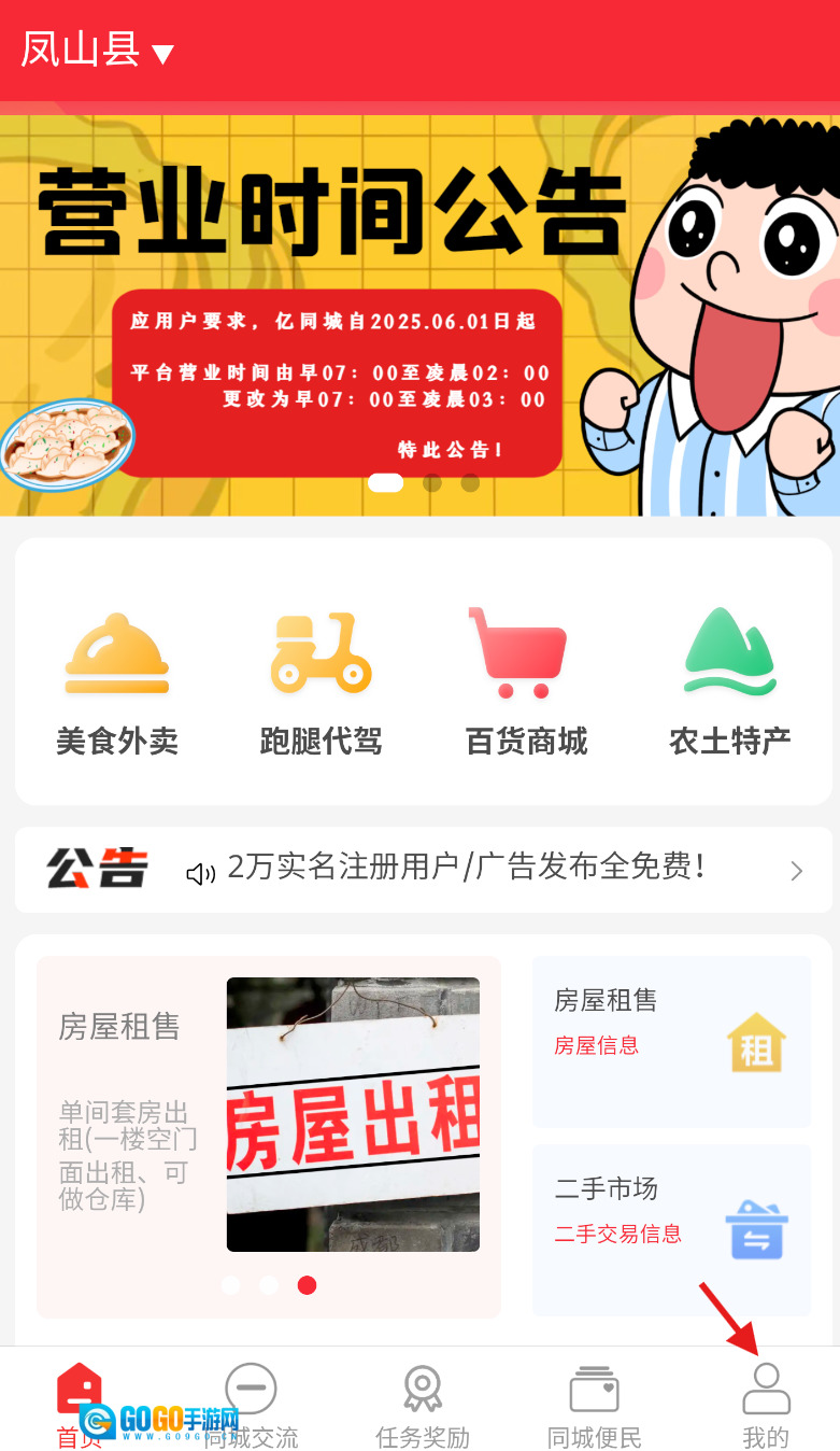 1、启动亿同城,在主界面底部菜单栏找到并点击 “我的” 选项。